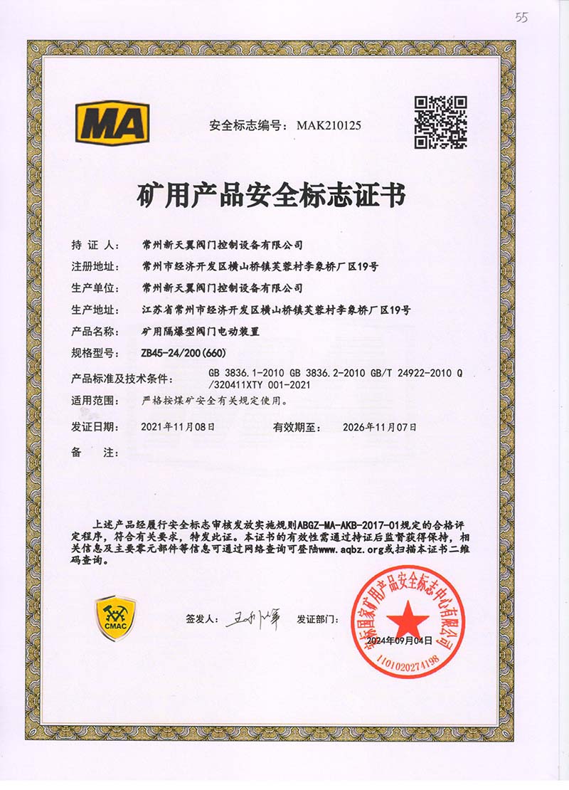礦用產品安全標志證書ZB30-24 200(660)